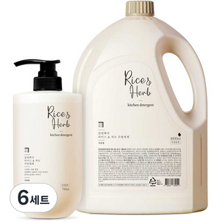 살림백서 라이스 앤 허브 주방세제 석류향 본품 750ml + 리필 4L 세트, 6세트