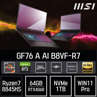 MSI GF시리즈 소드 GF76 A AI B8VF-R7, WIN11 Pro, 64GB, 1TB, Black