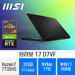 MSI 브라보 17 D7VF, WIN11 Home, 32GB, 1TB, 라이젠7, 블랙