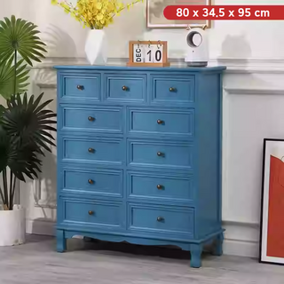 LUAFEEL엔틱 앤틱 빈티지 모던 원목 우드 거실 현관 서랍장 수납장 장식장 캐비닛 3단 4단 5단 가구 인테리어 유럽풍 협탁 60cm 80cm 100cm 600 800 1000, 11단, 블루