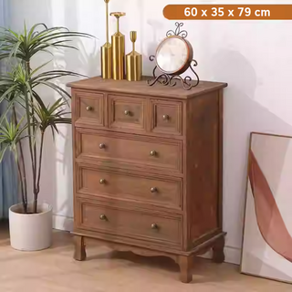 LUAFEEL엔틱 앤틱 빈티지 모던 원목 우드 거실 현관 서랍장 수납장 장식장 캐비닛 3단 4단 5단 가구 인테리어 유럽풍 협탁 60cm 80cm 100cm 600 800 1000, 6단, 브라운