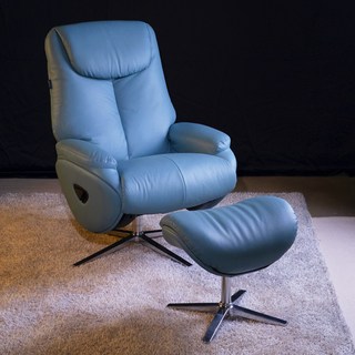 [10조한정 추가즉시할인쿠폰] 에보니아 포레 천연면피소가죽 라운지회전소파의자 스툴포함 1인용쇼파 리클라이너, 민트블루