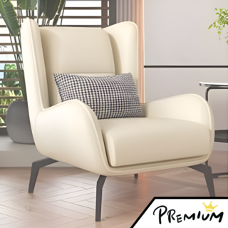 LACALE 넓은 윙체어 1인용 쇼파 생활방수 가죽 소파 안락의자 엔틱 암체어 팔걸이 쿠션 의자, 미색 시트, 의자만