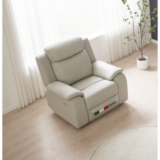 [레벤 Signature] 마티니 천연면피가죽 1인 리클라이너 소파+스툴, 화이트샌드