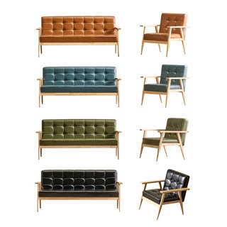 카페 매장 소파 모던 레트로 가죽소파 업소용 1인 2인 세트, 블랙, 브라운