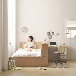 사사가구 메가 슈퍼싱글 서랍형 수납침대 파티션책장 포함, 오크