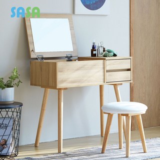 사사가구 트리버 1인용 서랍수납 원목 거울화장대 스툴포함 일반화장대, 내추럴오크