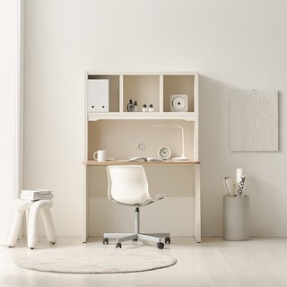 사사가구 끌림 1100 화이트 전면 편수책상 책장세트, 화이트&상판오크