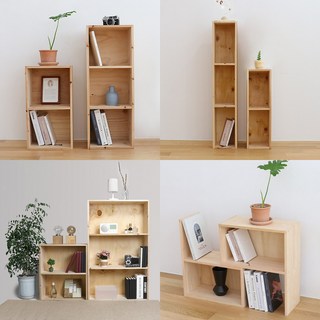 원목 소나무 공간 박스 책장, 2단