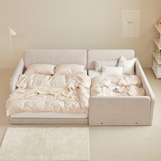 레이디가구 레브 기능성 패브릭 패밀리침대 볼드형 SS+Q 방문설치, 크림베이지