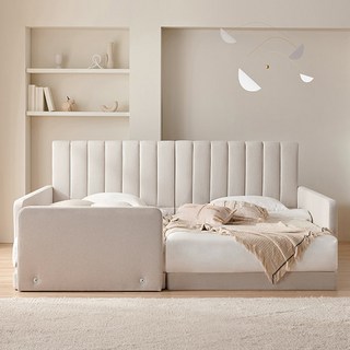 크기와 구성: 상형 패밀리 침대는 일반적으로 퀸 또는 킹 사이즈로 제공되며, 부모와 자녀가 편안히 함께 잘 수 있도록 충분한 공간을 제공합니다. 종종 추가적인 수납공간이나 침대 아래에 침구를 보관할 수 있는 공간이 포함되어 있기도 합니다.