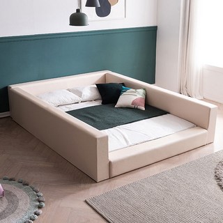 레이디가구 레브 기능성 패브릭 패밀리침대 볼드헤드 SS + Q 프레임 + 측면가드 + Q 풋보드 세트 방문설치, 크림베이지