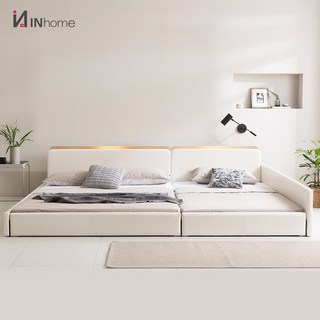 인홈 라온 LED 수납 저상형 패밀리침대+7존 독립 매트리스 포함 국내제작, 아이보리