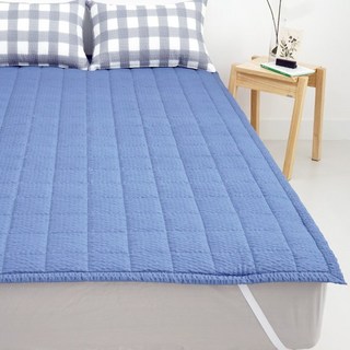국내산 선염 냉감 시어서커 고정밴드 여름 침대패드, 블루