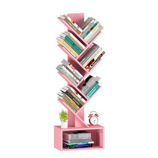 월로덴 스탠딩 트리형 북선반 틈새 수납 북타워 책꽂이 장식장, 5단, 핑크