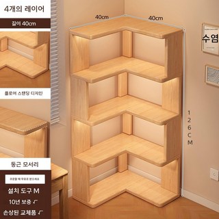 코너 모서리 책장 틈새 원목 책꽂이 벽 우드 인테리어, 4단 40cm 길이
