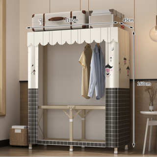 대형 조립식 옷장 장 침실 원룸 간이 비키니옷장 행거 이불장 옷방 커튼 기숙사 패브릭, 2. 회색 공간(120cm)