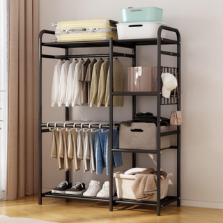 투에스리빙 철제 스탠드 시스템 드레스룸 행거 선반 행거 옷장 행거, 블랙 B