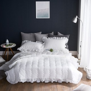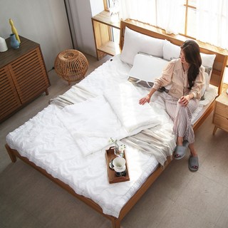 온도 60수 아사 순면 100% 피그먼트 줄누비 스프레드 이불 겸 패드, 화이트