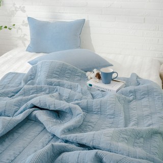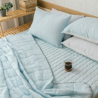 온도 60수 아사 순면 100% 피그먼트 줄누비 스프레드 이불 겸 패드, 블루