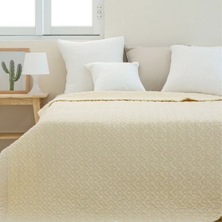 온도 60수 아사 순면 100% 피그먼트 줄누비 스프레드 이불 겸 패드, 베이지