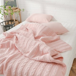 온도 60수 아사 순면 100% 피그먼트 줄누비 스프레드 이불 겸 패드, 핑크