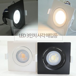 LED사각다운라이트 매입등 3인치할로겐 사각매입등 사각매입조명 4인치 5인치 6인치 사각매입조명 3 4 5 6인치 다운라이트 매입조명 간접조명 인테리어조명, 3인치 사각확산 LED5W, 블랙, 전구색(노란빛), 1개