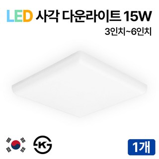 LED 사각 다운라이트 3인치 4인치 5인치 6인치 15W 매입등 슬림 플리커프리, 1개, 주광색