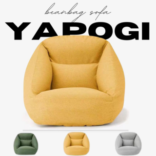 YAPOGI 1인 PVC 바닥 좌식 빈백 에어 소파, 옐로우
