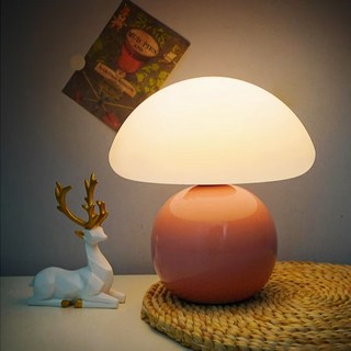 스탠드조명 무드등 빈티지 버섯 램프 LED 스탠드 무드등 밝기 조절 단스탠드, 웜 핑크 삼색 리모트 조광+타이밍 소등
