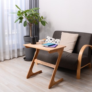 오브민 높이조절 사이드 쇼파 침대 이동식 노트북 테이블, 우드