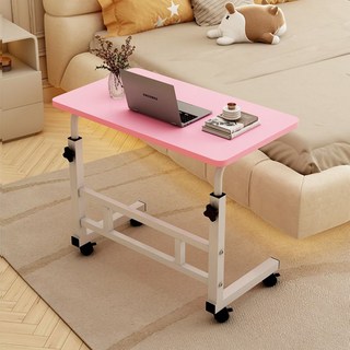 이동식 테이블 바퀴달린 소파 침대용 사이드 미니 높이조절 간이책상, 60x40 철제-30제곱, 핑크색