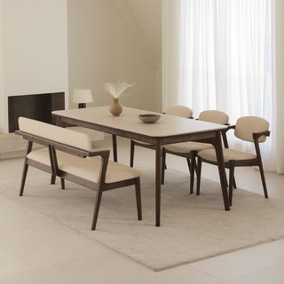노브랜드명품가구 세라믹 식탁 6인세트 월넛 호두 나무 원목 프레임 1900사이즈, 식탁+1인의자3개+벤치1개