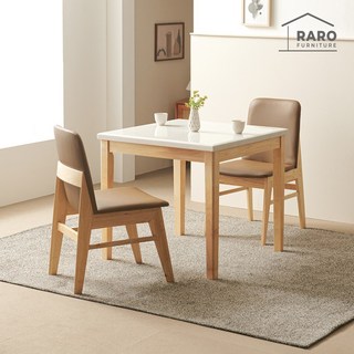 라로퍼니처 루아 800 천연 대리석 2인 식탁 세트 원목 테이블, 화이트(상판) 내추럴(다리)++의자 (브라운 방석, 내추럴 다리)
