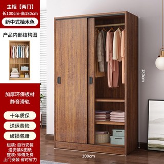 미닫이 옷장 장롱 칸막이 원목 드레스룸 도어 장농 공간 침실, 3 (유목)길이100CM 메인캐비닛 업그레이드 및 통통, 2도어, 조립하다.