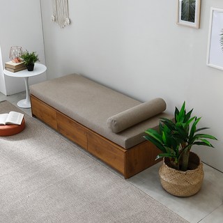 미엔우드 평상형 원목 소파베드 벤치 의자 1인용 2인용 3인용 수납 서랍 토퍼 패브릭 쇼파, 평상형 소파베드