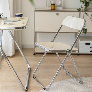 로얄다이아 아크릴체어 투명 크롬체어 접이식의자 미드센추리모던 투명의자, 아크릴체어 - 크림, 1개
