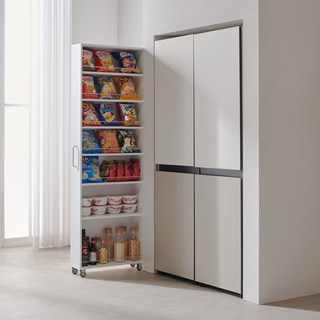 냉장고 틈새 수납장은 주방 공간을 효율적으로 활용하는데 도움을 주는데요. 기능적 측면: 냉장고 틈새 수납장은 냉장고와 깔끔하게 맞닿아 작은 공간을 활용하여 다양한 조미료나 작은 식자재 등을 수납할 수 있습니다. 이를 통해 주방 내부를 깔끔하게 정리할 수 있으며, 필요한 물건을 쉽게 찾을 수 있습니다.