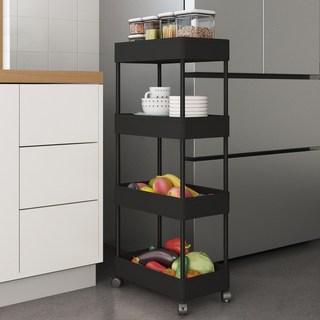 뷔이위이 틈새수납장 4단 이동식 수납 선반, 블랙