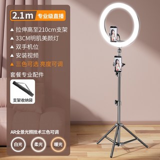 라이브 방송 촬영 LED 원형 조명 핸드폰 거치 삼각대, 2.1미터 + 13인치 링 뷰티 램프, 1개