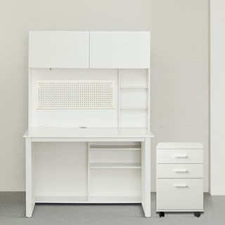 웰퍼니쳐 윌슨 1200 책장 + 책상 + 타공판 + 이동 서랍장 세트 방문설치, 화이트