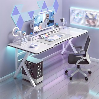 선반 컴퓨터 책상 올인원 LED 컴퓨터책상 게이밍책상 사무용책상 학생책상 서재책상 브라운/화이트 1인용 2인용 테이블 사이즈 120cm*60cm 고도 165cm, 화이트