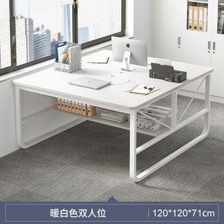 사무실 더블 직원 책상 칸막이형 2인 컴퓨터 책상 회의책상, 웜 화이트+화이트 프레임 120 cm