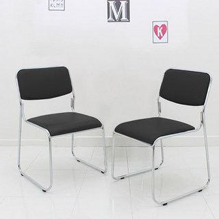오에이데스크 고정식 크롬 라운딩의자 세트, 블랙, 2개