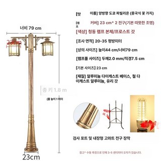 라오 태양광 방수 정원등 엔틱가로등 야외 조명 전기 태양열 문주등 센서등 길거리, (더블 헤드 높이 1.8m브론즈(전기와 LED 전구에