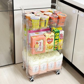 올지 3단 투명트롤리 미드센츄리 모던 수납함, 투명