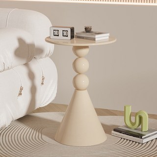 미드센추리 비드 라운드퍼니쳐 오브제 사이드테이블, 크림