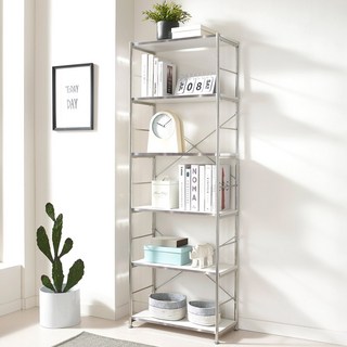 에버하우스 매거진랙 북타워 스탠드 벽선반, 실버, 6단