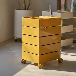 가구앤하우스 피보 360도 회전 이동 서랍 사각 5단 트롤리 컨테이너 틈새 수납장, 옐로우