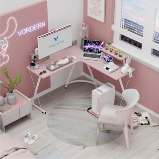 L자형 컴퓨터 책상 코너형 게이밍 책상 컴퓨터 테이블 학생 책상 서재 책상 사무용 책상, 핑크화이트